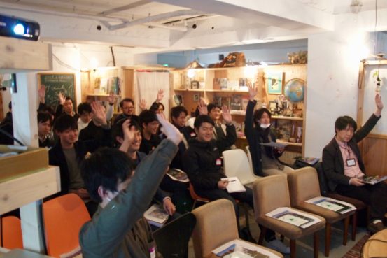 この日は全国から11組の報告者が参加。「アメリカのパブリックスペースとタクティカルアーバニズム」、「オープンストリートとオープンカフェ」、「パブリックスペースのファーニチャー」、「アクティビティリサーチ研究最前線」、「水辺とサウンドスケープと保育パーク」という5つのテーマに沿って、日々の研究や実践を発表しました。会場のダーウィンルーム(東京・下北沢)にはパブリックスペースに関心を持つ専門家や実務家、およそ35人が集まり、熱い議論を交わしました。