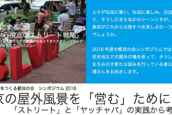 【5/28】編集長登壇!「東京の屋外風景を「営む」ためには?ー「ストリート」と「ヤッチャバ」の実践から考えるー 美しい東京をつくる都民の会 シンポジウム2016」開催!