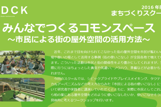 【6/25,7/2,7/9,7/16,7/23】「UDCKまちづくりスクール2016前期 みんなでつくるコモンスペース~市民による街の屋外空間の活用方法~」開催!