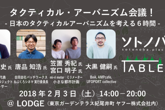 2018年最初の「ソトノバTABLE」は、ソトノバ・ラボのワークグループであるタクティカル・アーバニズム・ラボによる特別企画!