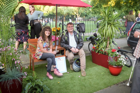 昨年(2017年)夏、ロンドン・フィールズの隣のストリートにある駐車スペースに小さな公園をつくりました。