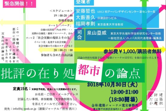 【10/30】建築ジャーナル公開討論会「批評の在り処 都市の論点」開催!