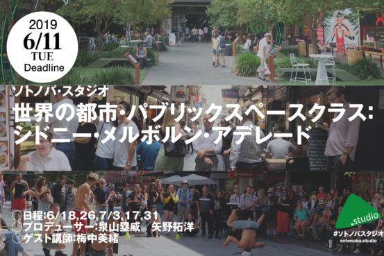 プロデューサー・ソトノバ編集長の泉山塁威から、ソトノバ視察の経験から、メルボルンの都市やパブリックスペースの事例についてレクチャと参加者とのディスカッションをします。