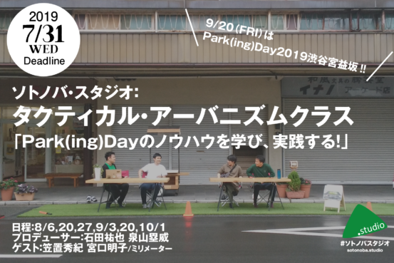 7/31締切:タクティカル・アーバニズムクラス:Park(ing)Dayを実践!