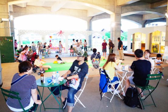 高架下のくらす広場は、通常平日の10時〜17時にオープンしています。日常の使われ方は?と聞くと、子ども連れのママさんが談笑したり、人工芝の上で子供が本を読んだり、ひなたぼっこしながら遊んだりしているそう。開講している講座をきっかけにやってくる人もいます。くらすクラスに専任スタッフはいないそうですが、場の運営はどうしているのでしょうか。