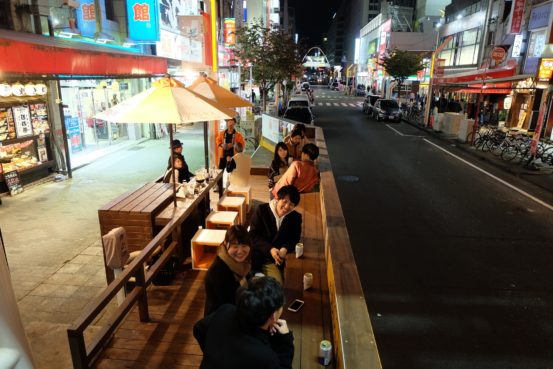 路上駐車場で休憩、エリアマネジメントの財源にも! 栄ミナミ「パークレット」社会実験