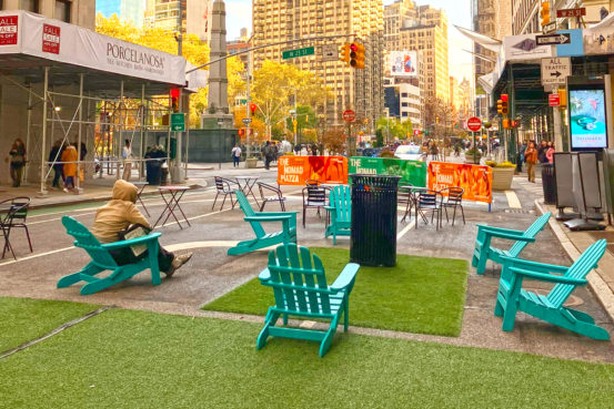 そこから10年、2020年の新型コロナウイルスの蔓延は、ニューヨークを一時、ゴーストタウンへと変貌させましたが、水面下ではコロナ禍に応じた歩行者空間化の試みが進められていました。