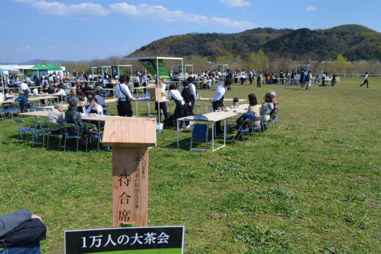 「お茶の京都博」は、京都府が中心となって推進するイベントで、2017年4月から1年間かけて様々なプログラムを提供します。そのオープニングを飾ったこのイベントは、2日間で2万人を動員。その目玉のプログラムが、芝生上の特設ブースで開催した「1万人の大茶会」でした。