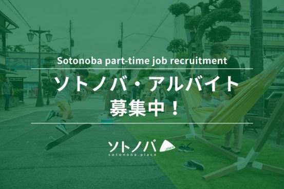 一般社団法人ソトノバでは、ソトやパブリックスペースを活用したまちづくりに興味・関心がある皆さんに、ソトノバの活動における企画・運営サポートや、実証実験などにおける実際の現場での調査・実践を補助するコンサルティング業務補助として、「ソトノバ・アルバイト」を募集します。