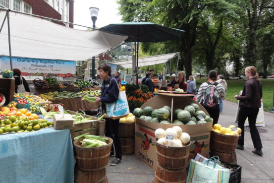 オレゴン州ポートランド市では、春から晩秋にかけて、市内各所で毎日のようにファーマーズマーケットが開催されています。