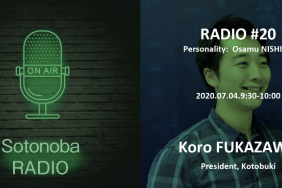 ソトノバ・ラジオ#20のゲストは、株式会社コトブキ 代表取締役社長の深澤幸郎さん。