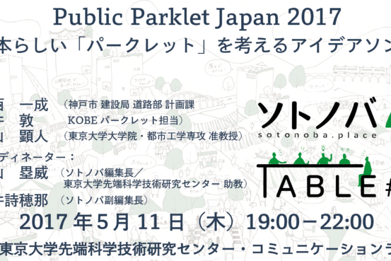 【5/11】「Public Parklet Japan2017 日本らしい「パークレット」を考えるアイデアソン」ソトノバTABLE#16
