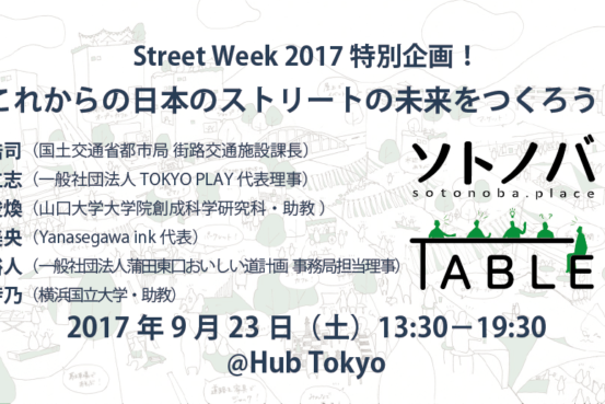 記念すべき20回目のソトノバTABLEは、ストリートを考える一週間「ストリートウィーク」(9月15日〜24日)の特別企画として開催!