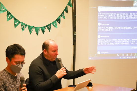 登壇者からの質問にパンデミックのときの試行錯誤のエピソードを話してくれたライアンさん photo by sotonoba