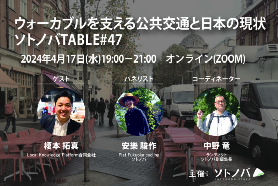 4/17:ウォーカブルを支える公共交通と日本の現状|ソトノバTABLE#47