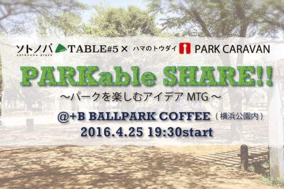 【4/25】「PARKable SHARE !!〜パークを楽しむアイデアミーティング〜」ソトノバTABLE#5×パークキャラバン