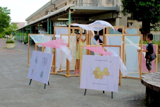 はじめから子どもたちを主な利用者として想定したので、出来る限り丁寧にヤスリがけをするなど、仕上がりの完成度も高い作品でした。また、この場所は東屋やベンチなどが設えられているのですが、経年でところどころ傷んでいることもあります。利用している人が少なかったのですが、この展示期間に子どもたちが遊んでいると地域の人もベンチに座って眺めるなど、元々の設えの利用率も上がるなど発見がありました。