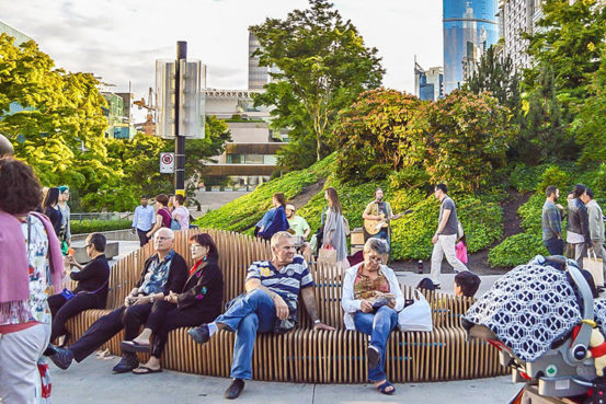 バンクーバー冬季オリンピック終了後、毎年夏に、800ブロックのロブソンストリートでは、木製ベンチや豆袋のイスなどが「ペイブメントトゥープラザ」(Pavment to Plazas)のシリーズの一環で実施されました。これは、アートギャラリーの再開発を主導する街で、より良いパブリックスペースを表現したとして高く評価されています。