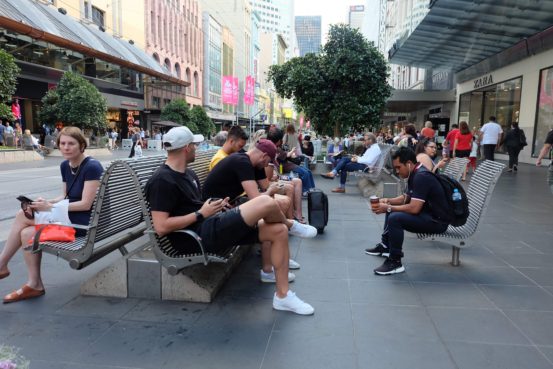 それは、メルボルン市のFuture Melbourne 2026 Planの目標にも掲げられています。その一つとして、パブリックスペースのデザイン基準を定め、デザインの統一されたベンチ(シティベンチ)がまちなかに設置されています。これにより、オープンカフェとは異なり、無料で、誰もが休んだり、休憩したり、まちなかの居場所を提供し、パブリックライフを過ごす場所を提供しているのです。